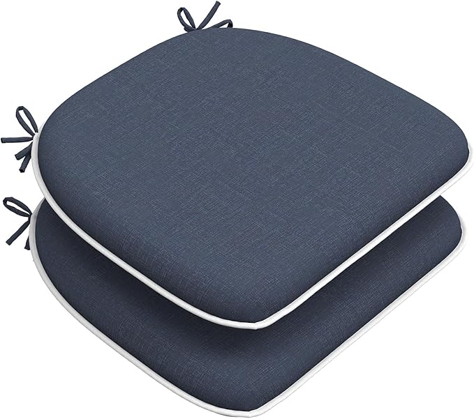 Set of 2 Outdoor Chair Cushions with Ties,Water Repellent Patio Chair Pads 17"x 16" for Outdoor Furniture,Round Corner Seat Cushions for Garden Yard Kitchen Textured Navy