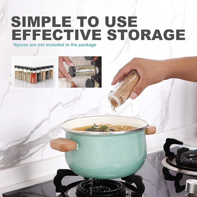 - SAFE MATERIAL AND GOOD SEAL - SPICE RACK is made of stainless steel. Spice jars is made of lead-free glass,plastic ,durable and stable. You can turn the lid to use, or you can close it to keep your spices fresh.