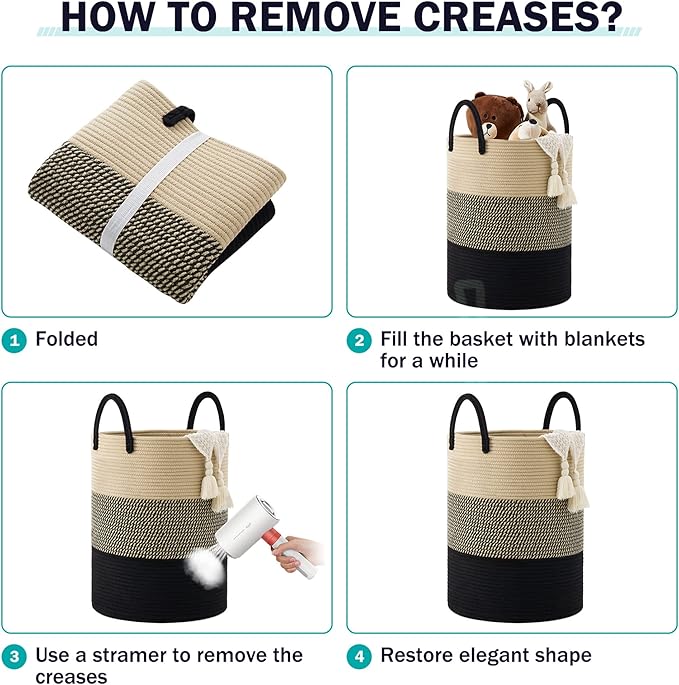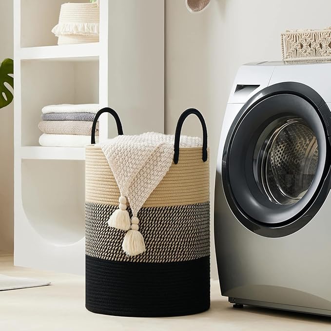 - Multipurpose Storage Baskets: This cotton laundry basket can keep things organized in a stylish and decorative way. You can use them to store extra towels, blanket, clothing, toys, books, pillows or any other household items around the house