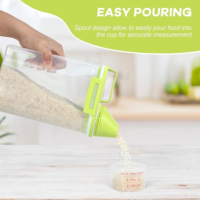 - Easy Pouring: The rice storage container features a pouring spout makes it a breeze to dispense your ingredients. Its ergonomic design offers a comfortable grip for easy, single-handed pouring