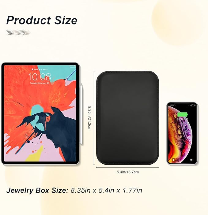 - [TRAVEL JEWELRY CASE] - Design for journeys, travel, weekend trip, or business trip. The small jewelry organizer is lightweight and portable: 8.35" x 5.4" x 1.78". It is easy to carry in your handbag or luggage and keeps all your jewelry well organized.