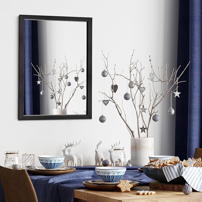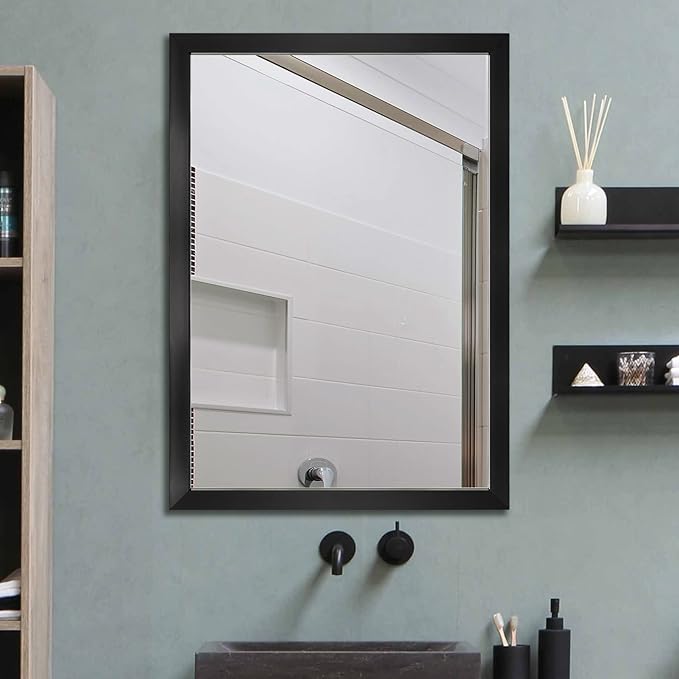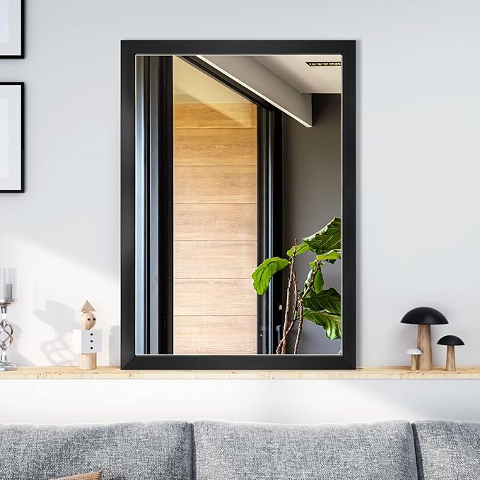 BOMINICA Rectangular Wall Mirror 20” x 28” Bathroom Mirror Framed Wall Mirror for Living Room, Vanity, Black