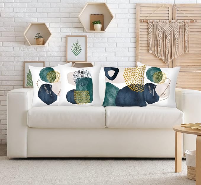 - Boho Chic: Bring the warm spring hues of the modern art into your home with our abstract spring pillow covers 18x18. Printed with a contemporary arrangement dark green, navy blue, , beige, mustard yellow and pastel color block, these decorative pillows are the perfect accent piece to style and instantly brighten any corner