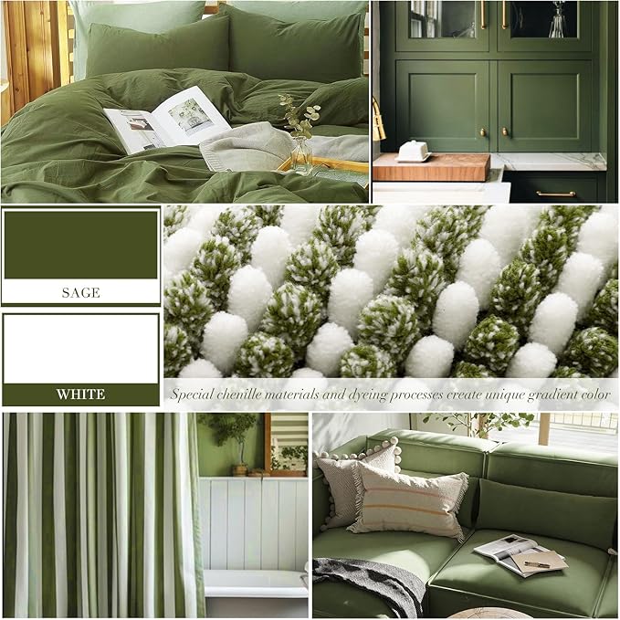 BSICPRO Bathroom Rugs and Mats Sets, 2 Piece Thick Absorbent Chenille Bath Mat Rug Set Non Slip, Soft Shaggy Bath Room Floor Mats for Bathroom, Machine Washable (Sage, 20" x 47" Plus 16" x 24")