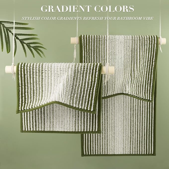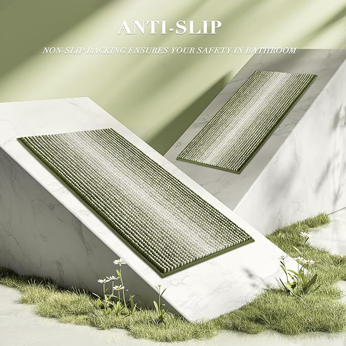 - 【EXTRA ABSORBENT BATHROOM RUG】: The luxury performance chenille microfibers can quickly absorb moisture from your feet when you step out of the bath or shower, and save your floors from dripping water, and dries quickly, making your feet feel the ultimate luxury enjoyment