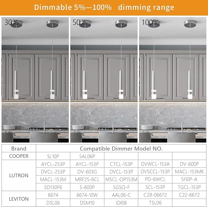 - 【Dimmable】The pendant light 0%-100% dimming range, compatible with most household thyristor LED dimmers, running smoothly without flicker.Suitable for 110~120 volts
