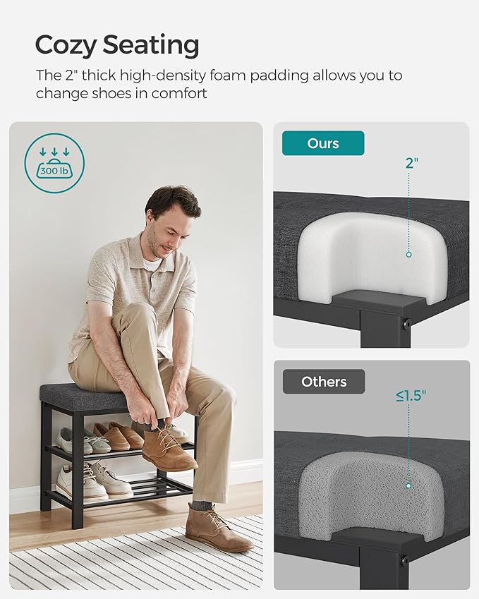 - [Strong Support] This shoe storage bench supported with a robust powder-coated steel frame offers firm and reliable support (max. static load 300 lb)