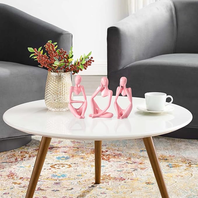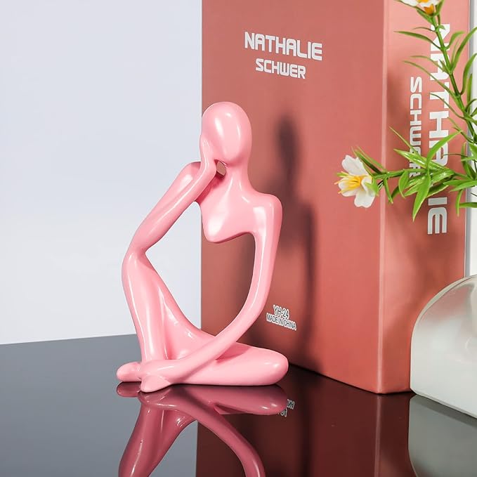 Thinker Statue Gold Decor Abstract Art Sculpture, Golden Resin Collectible Figurines for Home Living Room Office Shelf Decoration,Great Gifts Ideas (Pink)
