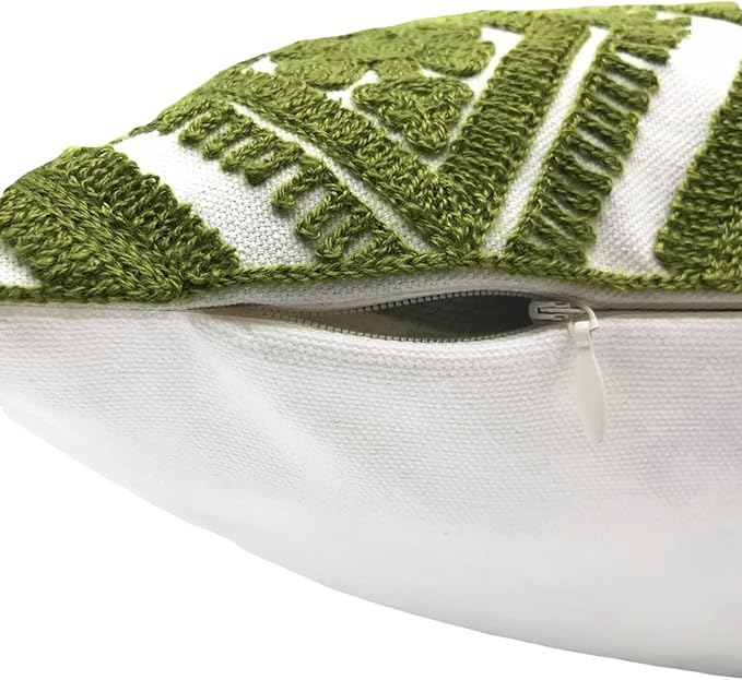 Alysheer Embroidered Decorative Throw Pillow Covers 18x18 inches Set of 2 Pieces, Boho Geometric Modern Chic Classic Pattern Cotton Cushion Cases for Sofa Couch Bed Living Room(Olive Green)