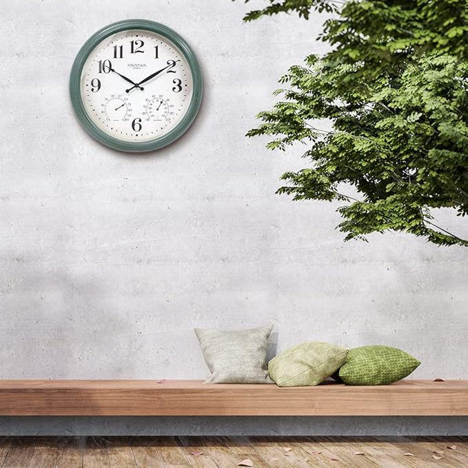 Maison in/Outdoor Clock with Thermometer, 2 in One Weather Station (Weather Thermometer/Wall Decoration) (Aged Teal, 18 inch)