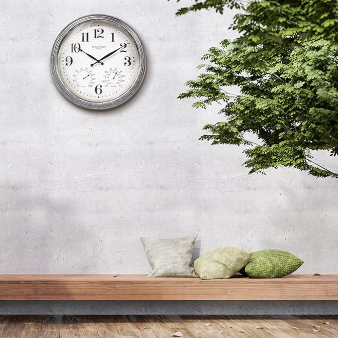 Maison in/Outdoor Clock with Thermometer, 2 in One Weather Station (Weather Thermometer/Wall Decoration) (Galvanized, 18 inch)