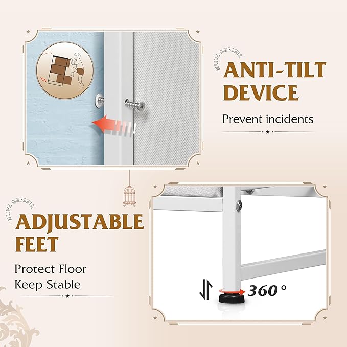 - 6 Drawer Chest: The Chest of Drawers features easy-to-pull arch handles, storage drawers made of high-quality non-woven fabric, and 4 adjustable feet that protect floor from scratches.