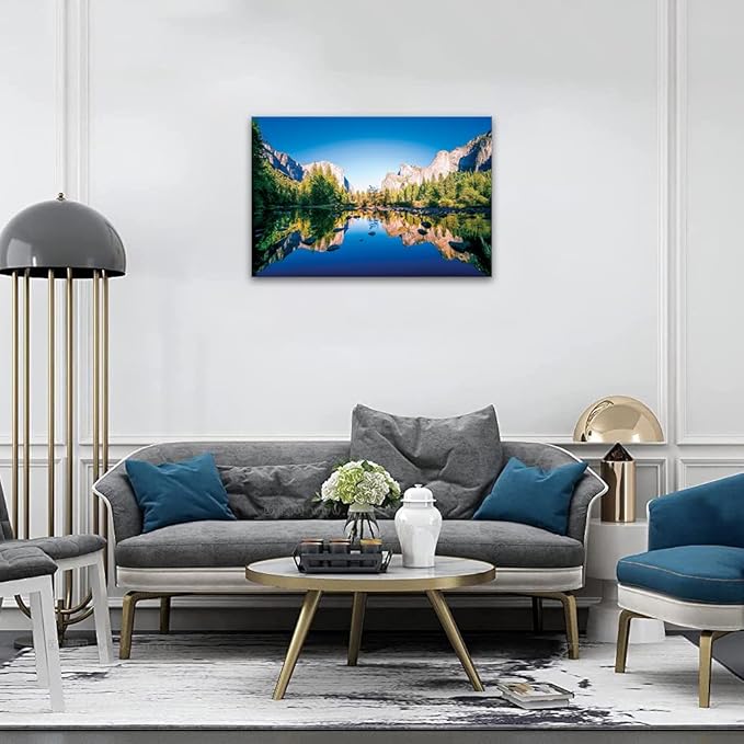 SKASNFAI Yosemite National Park Canvas Wall Art Forest Artwork Blue Lake Picture Prints Framed Home Decor for Bedroom Living Room (28x44 inch)