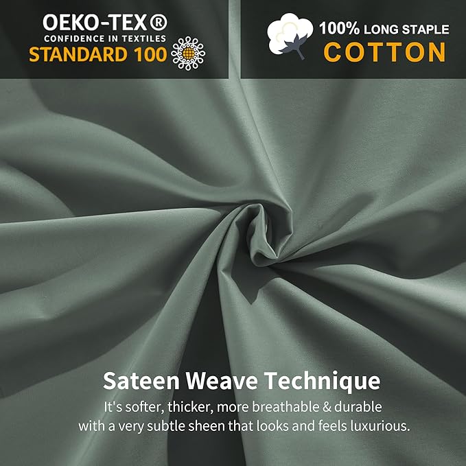 - 🌊【100% Egyptian Cotton】 Mildly Duvet Cover Set is made of 100% Long-staple Cotton with Sateen Weave Technique which is softer, thicker, more breathable & more durable with a very subtle sheen that looks and feels luxurious. Made in Oeko-Tex standard 100 factory, an independent certification system that ensures textiles meet high safety and environmental standards.