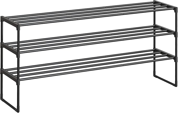 SONGMICS Shoe Rack, 3-Tier Shoe Organizer, Metal Storage Shelf, Upright or Upside Down, for 20-24 Pairs, Stackable, for Entryway, 11.8 x 46.1 x 21.7 Inches, Black ULSA033B01