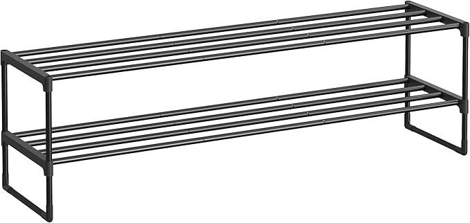 SONGMICS Shoe Rack, 2-Tier Shoe Organizer, Metal Storage Shelf, Upright or Upside Down, for 15-18 Pairs, Stackable, for Entryway, 11.8 x 46.1 x 13.4 Inches, Black ULSA032B01