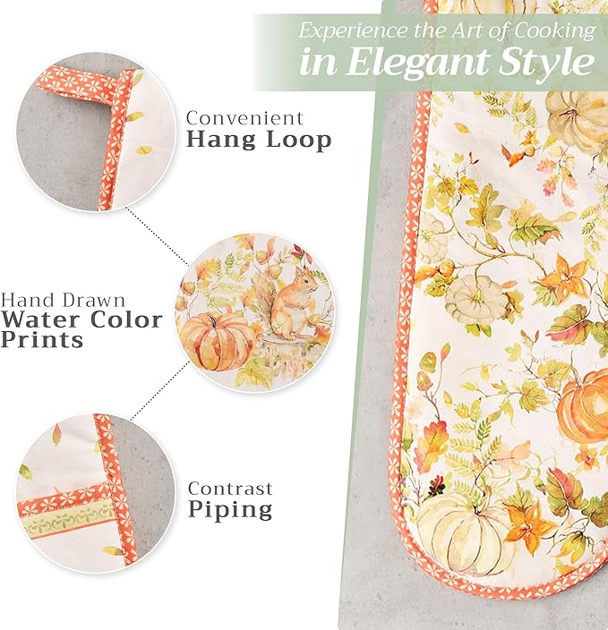 - Unique Design: Inspired by Europe, featuring exquisite watercolor artwork where each design embodies over 120 hours of hand-painted artistry. The rich hues and fine detailing make this Double Oven Mitt perfect for holiday tables, fall decor, Thanksgiving decorations, or festive Christmas decorations