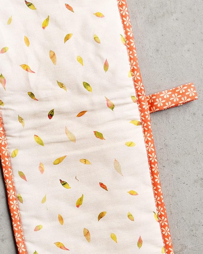 Maison d' Hermine Double Oven Mitt (7" x 35") 100% Cotton Heat Resistant BBQ Cooking Gloves with Loop for Thanksgiving Christmas Decorations Baking Cooking Barbeque Handling Hot Pan (Pumpkin Passion)