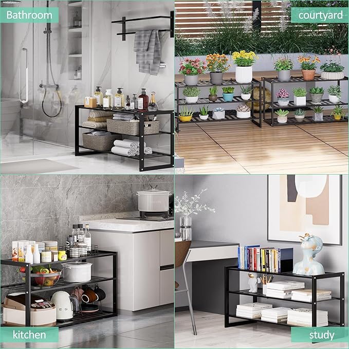 - 【Stackable & Adjustable Design】The entryway shoe racks has a perfect tenon design without stacking tools. You can combine 2 3-tier shoe racks into a 6-tier shoe rack, saving space by creating multiple units. And, Our shoe organizer for closet has 4 different height holes, you can install the bamboo panel at different height according to your actual storage needs, such as toiletries, towels, clutter, decorations, books, plants, shoes and small appliances.