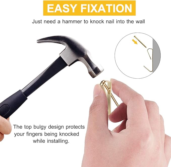- [High Quality]: Our picture hanging nails material has been upgraded, it is sturdy reliable and durable, It will work perfectly in a hard enough wall. Nail is not easily to bend,easily done with a hammer, very strong, can decorate all kinds of objects on the wall.
