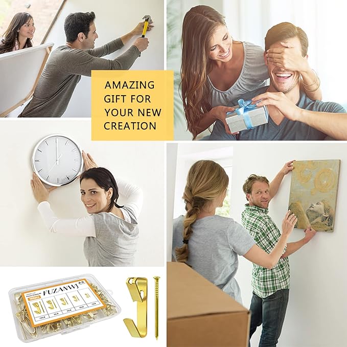 160Pcs Picture Hangers, FUZANWJ Heavy Duty Picture Hanging Kit, Picture Hanging Hooks, Nails for Hanging Picture, Picture Hooks on Wooden Wall / Drywall for Pictures, Canvas, Mirror, Holds 10-100 lbs