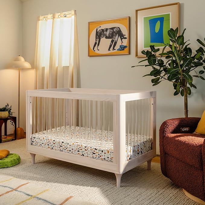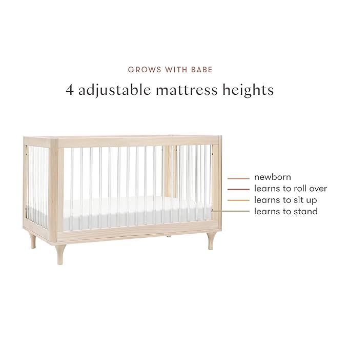 Babyletto Lolly 3-in-1 Convertible Baby Crib - GREENGUARD Gold Certified Convertible Crib to Toddler Bed & Daybed - Wooden Baby Bed, 4 Adjustable Heights - Easy to Assemble - Washed Natural/Acrylic