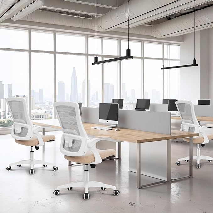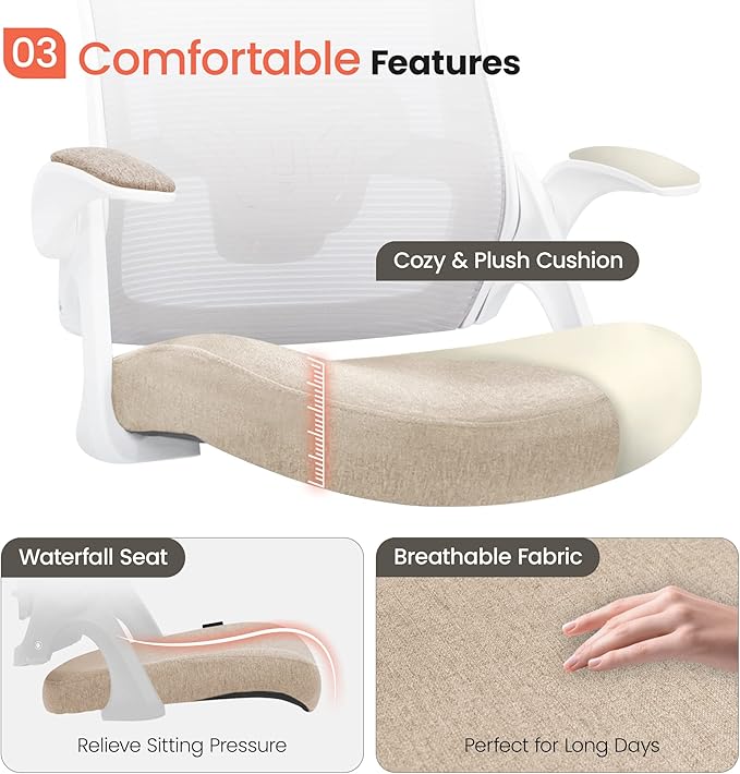 NEO CHAIR Office Desk Chair Computer High Back Mesh Gaming Seat with Ergonomic Adjustable Comfy Flip-up Armrests Lumbar Support Height for Home (Beige)