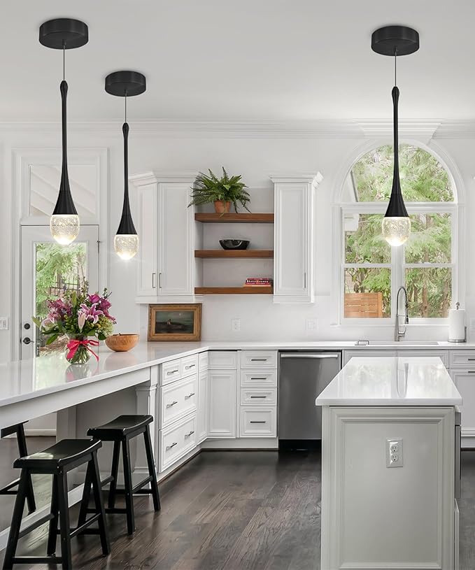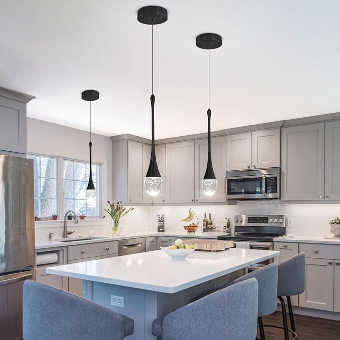 Modern Pendant Lights for Kitchen lsland LED Dimmable Raindrop Chandelier Crystal Ceiling Pendant Lighting for Dining Room Hallway Bar Living Room (1 Pack)
