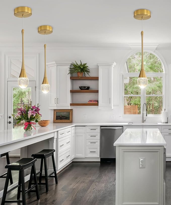 Single Head Gold Bubble Crystal Chandelier Modern LED Pendant Lights for Kitchen Island Dimmable 3000-6000k(3 Independence Light)…