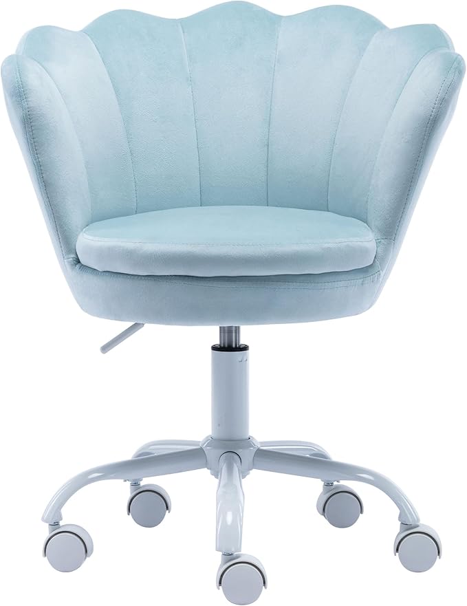 Velvet Kids Desk Chair Cute Computer Chair Modern Upholstered Swivel Arm Chair Adjustable Rolling Vanity Chair for Bedroom Living Room Girls (Blue)