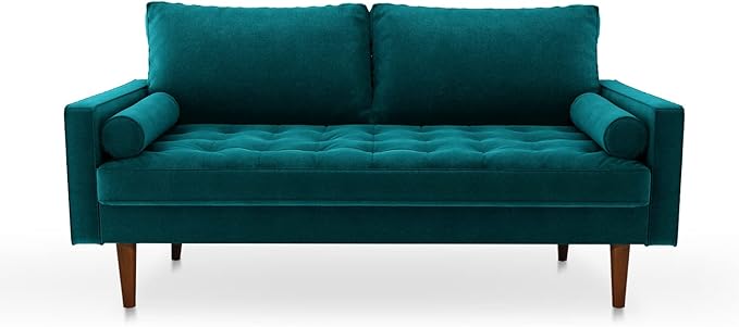 Modern Sofa,70 Inch Velvet Couch for Living Room,Spring Cushions,Solid Wood Frame,Easy Assembly for Small Spaces (Teal Blue)