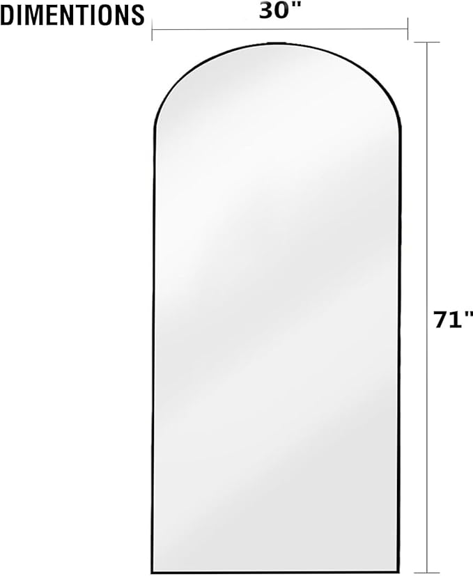 - 【Arched-Top Design】Arched floor mirror is designed with an arched top frame. The giant mirror is surrounded by an aluminum alloy frame.The frame is very thin,brushed, and more textured. It is very conspicuous in any space and makes your room look tasteful.