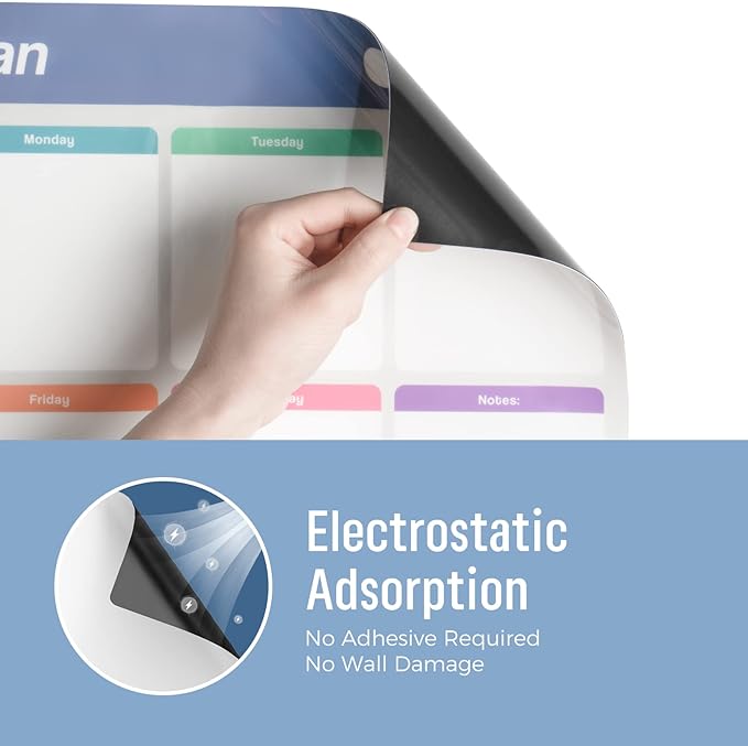 - Durable & Reusable:Made of premium PET materia that can be easily wiped off without leaving any residue. Static adhesive lasts for a long time. It can be removed and reapplied at any time. If you clean the back before reuse, your board will last longer.