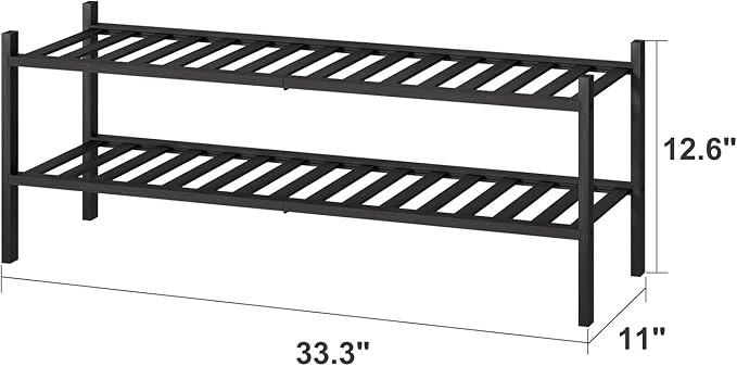 Black Shoe Rack, 2-Tier Long Shoe Rack for Entryway, Bamboo Wood Shoe Shelf for Closet & Hallway, Long 33IN | Beautiful | Functional | Sturdy | Durable