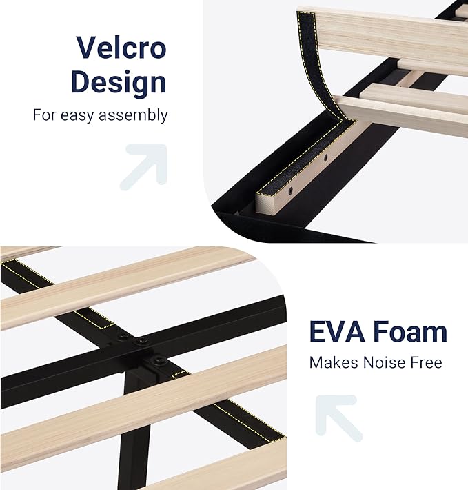 - Minimalist & Noise-Free: Bed frames full with a padded upholstered headboard, suitable for various decors; EVA mute bar prevents noise from friction, no squeaking or creaking