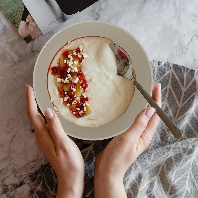 - 🌾【More Thick & Large Capacity】The wheat straw bowls are designed with thicker and smooth round edges which gives you a good touch and prevent deformation.Our wheat straw bowls set has ideal shape and antiskid stripe which avoid spilling your food. Additionally, it is perfect for cereal, salad, fruit, rice, noodle and so on.