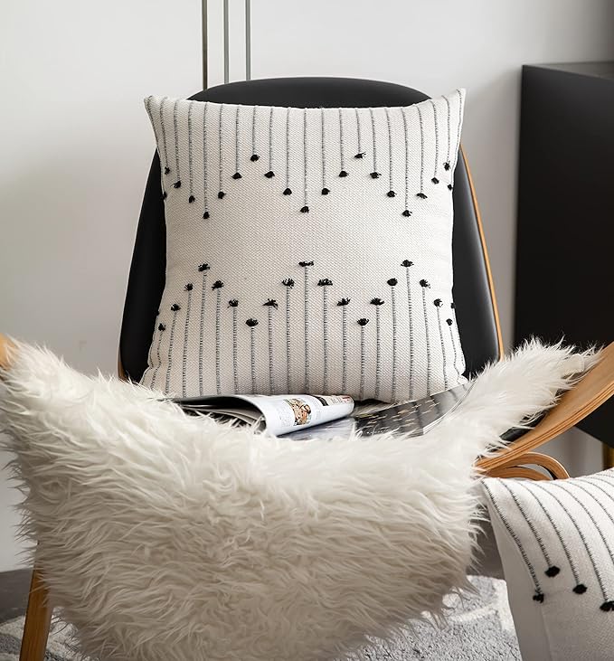 - Exquisite Chic Design:The simple and neutral designs of these pillow covers will complement any decor style, from modern to boho. The color is natural and comfortable, Lingering lines and mini tassels that will give any dull space an instant facelift