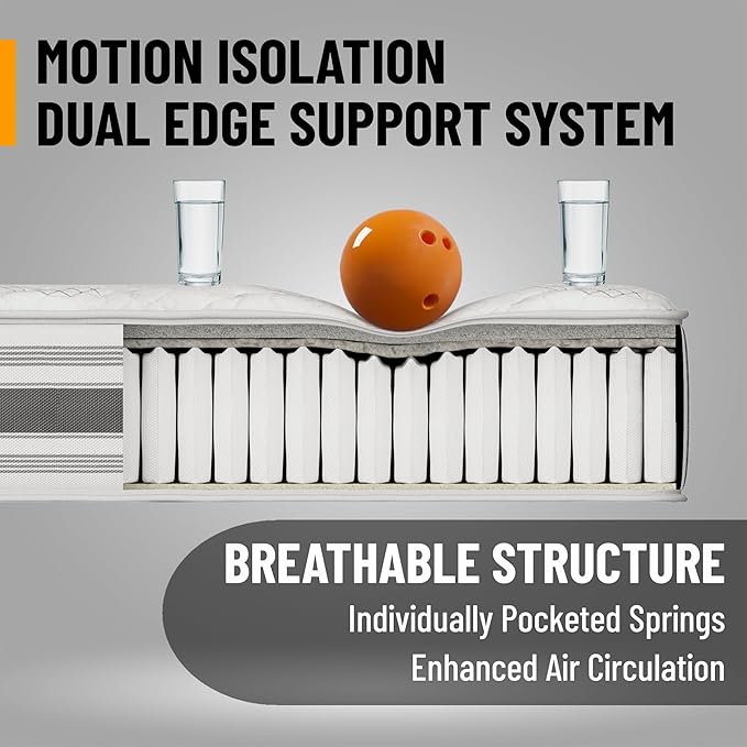 - [Breathability & Temperature Regulation]: The edge-to-edge pocket coil system enhnaces airflow better than traditional closed coil system or dense foam mattress. This improved ventilation helps dissipate heat, promoting a cooler, more comfortable sleep.