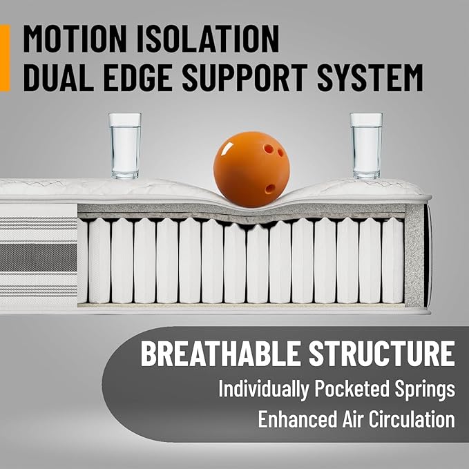 - [Breathability & Temperature Regulation]: The edge-to-edge pocket coil system enhnaces airflow better than traditional closed coil system or dense foam mattress. This improved ventilation helps dissipate heat, promoting a cooler, more comfortable sleep.