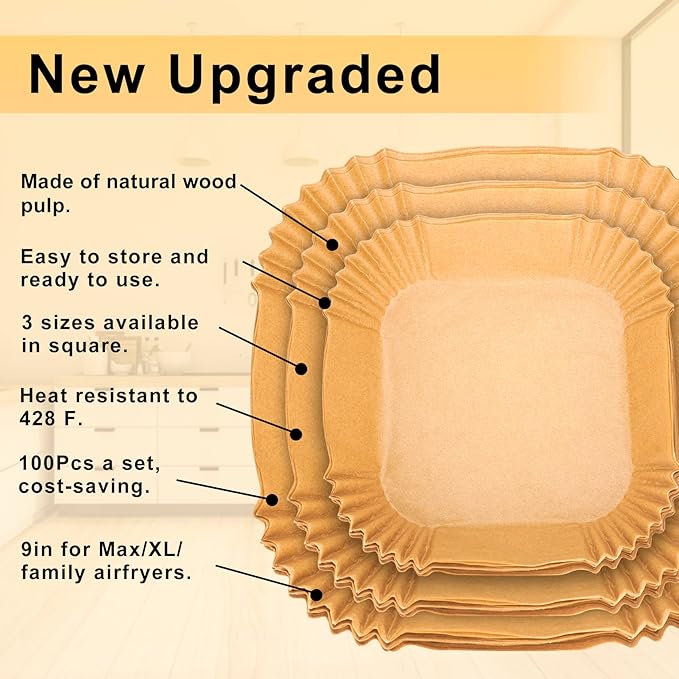 - Keep Air Fryer Cleanup: These disposable parchment paper designed with a square bowl shape, which can effectively keep your air fryer away from food residues and protect the side of fryers. No oil leak and no need to wash dishes
