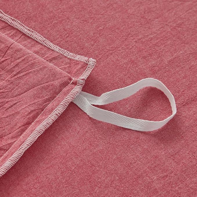 FACE TWO FACE Bedding Duvet Cover Set100% Washed Cotton Duvet Cover Linen Like Textured Breathable Durable Soft Comfy (Queen, Red)