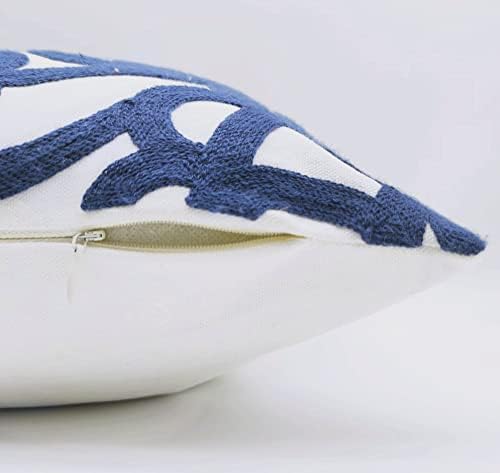 Alysheer Embroidered Decorative Throw Pillow Cover 20"x 20", Boho Mandala Modern Thick Embroidery Pattern, Durable Cotton Canvas Soft Cushion Case for Sofa Couch Bed Living Room (Navy Blue)