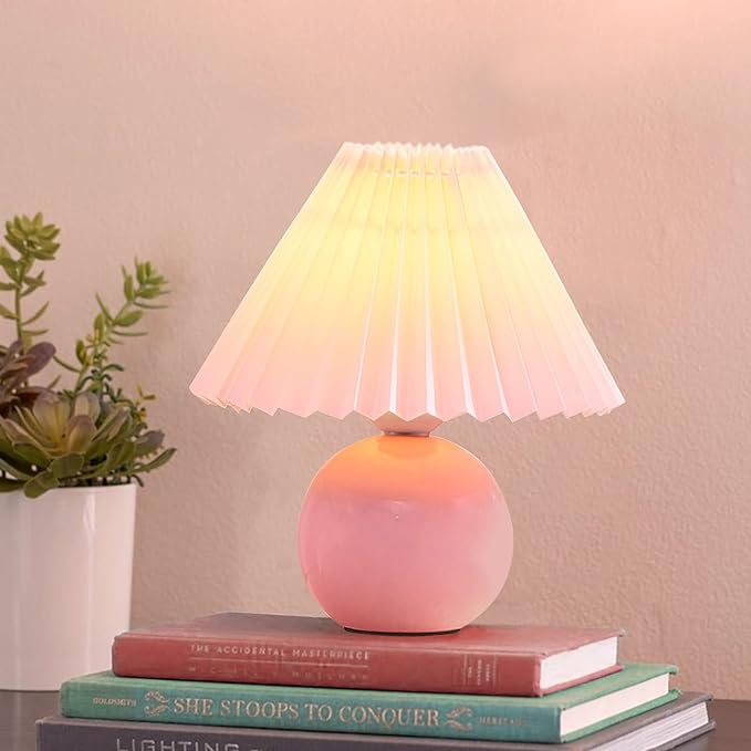 Zenply Korean Pleated Table Lamp, Bedside Nightstand Mini Lamp for Bedroom Living Room Side Table Small Spaces