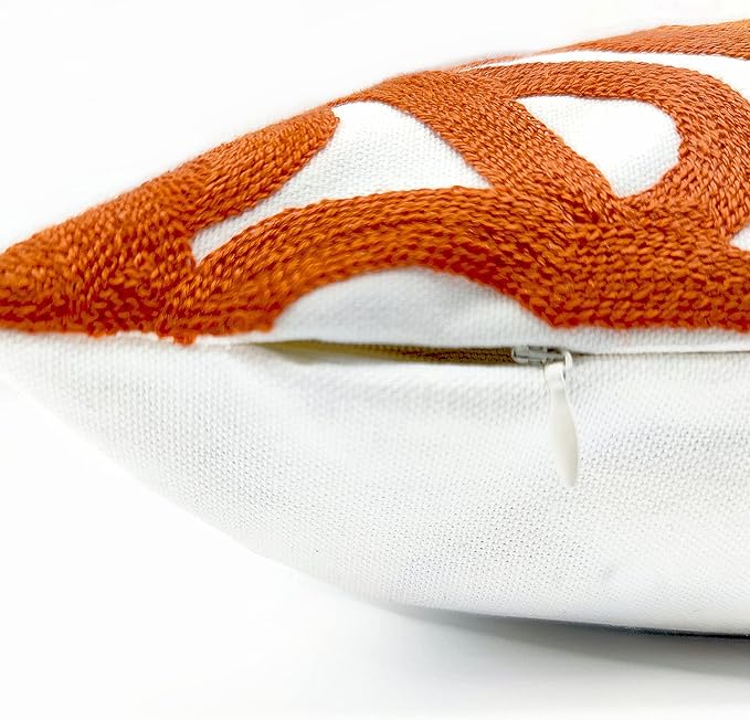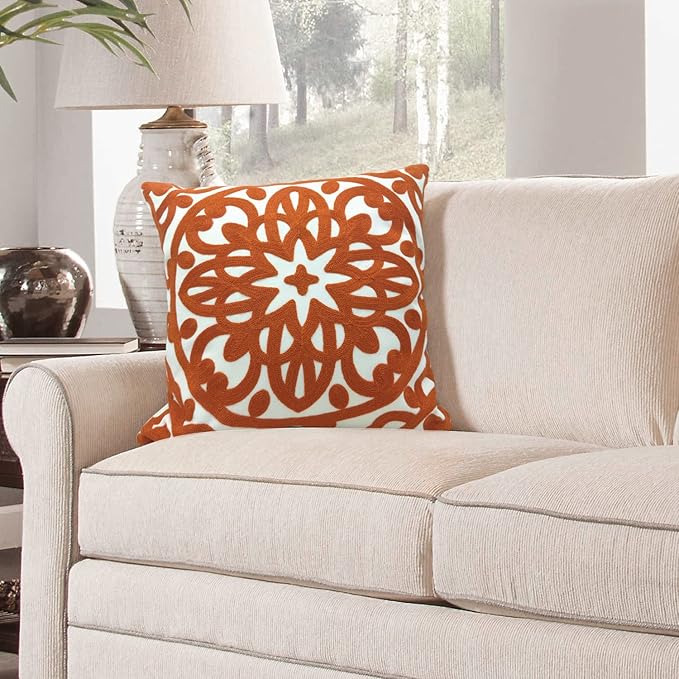 Alysheer Embroidered Decorative Throw Pillow Cover 20"x 20", Boho Mandala Modern Thick Embroidery Pattern, Durable Cotton Canvas Soft Cushion Case for Sofa Couch Bed Living Room (Burnt Orange)