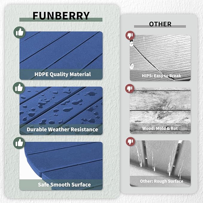 - All Weather Resistant Material: Made of HDPE (High Density Polyethylene) material, this Adirondack side table is highly durable for outdoor use. This side table is waterproof, heat resistant and UV fade resistant. No cracking, no fading or rotting comparing to other materials like wood, plastic or HIPS.
