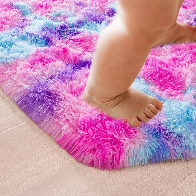 - Non-slip Backing: The fluffy rainbow area rug has a non-slip design with thousands of durable grip points on the back to enhance friction, so that the rainbow carpet can be more firmly fixed to the floor, prevent kids from touching the hard floor, bringing you more safety and comfort
