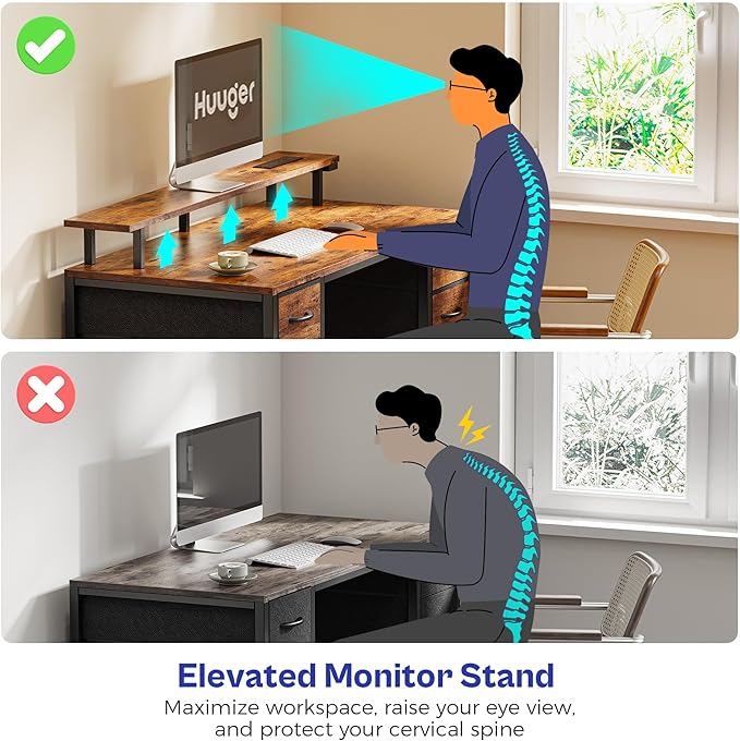 - 【Computer Desk with Shelves】- The monitor stand allows you to sit correctly while working, you can have a healthy cervical spine to stay productive while working at home.