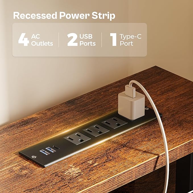 - 【Desk with Power Outlets】- Equipped with 4 Standard Plug Outlets, 2 USB Ports and 1 Type-C port, this computer desk with shelves can easily charge your phones, gaming gear and other office devices, avoiding cluttered wires.