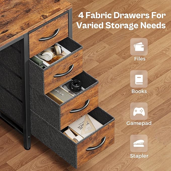 - 【Computer Desk with Drawers】- PATENT PENDING! The desk can be used as a home office desk for working from home. 4 fabric drawers help store files, stationery and other office supplies, this desk has ample storage space for you to store unlimited office supplies and documents. Super practical design! Note: The LED light strip needs to be plugged into a USB port to work
