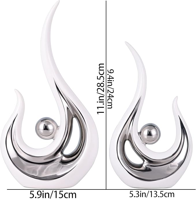 - Statue material: Modern decorations are made of high quality ceramic fired at high temperature, well made, beautiful, looks luxurious and elegant, easy to clean, odourless, non-toxic and non-hazardous. Sculpture size: large size 5.9 "L, 2.36" W, 11.2" H. Small size 5.3 "L, 2.16" W, 9.44" H
